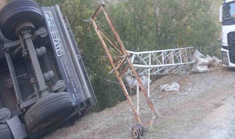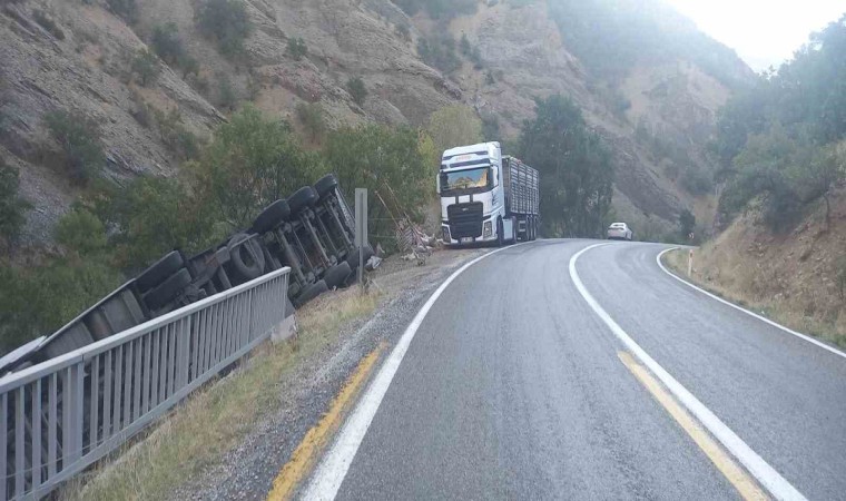 Tunceli-Erzincan karayolunda virajı alamayan tır devrildi. Kazada sürücü yaralandı.