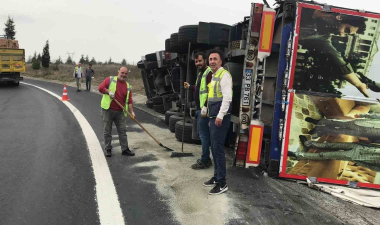 Kaza, Ergene Velimeşe mevkiinde bulunan Çorlu otoban çıkış bağlantısında meydana geldi. Çorlu istikametine seyreden M.A. idaresindeki tekstil malzemesi yüklü tır, virajı geçerken devrildi. Kaza sonrası tır şoförü M.A. ve yolcu olarak bulunan H.K. yaralandı. Yaralılar, olay yerine gelen ambulansla Çorlu Devlet Hastanesine kaldırıldı.