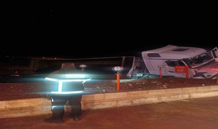 Adıyaman’da, kazaların sürekli yaşandığı virajda kontrolden çıkan tırın devrilmesi sonucu 1 kişi yaralandı.