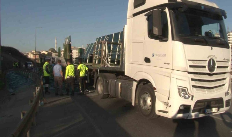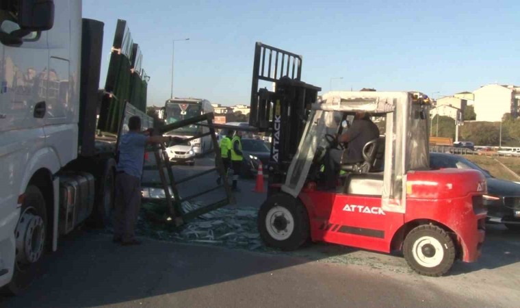 Sancaktepe’de virajı alamayan tırır üzerindeki camlar yola savruldu, olayda ölen veya yaralanan olmadı.