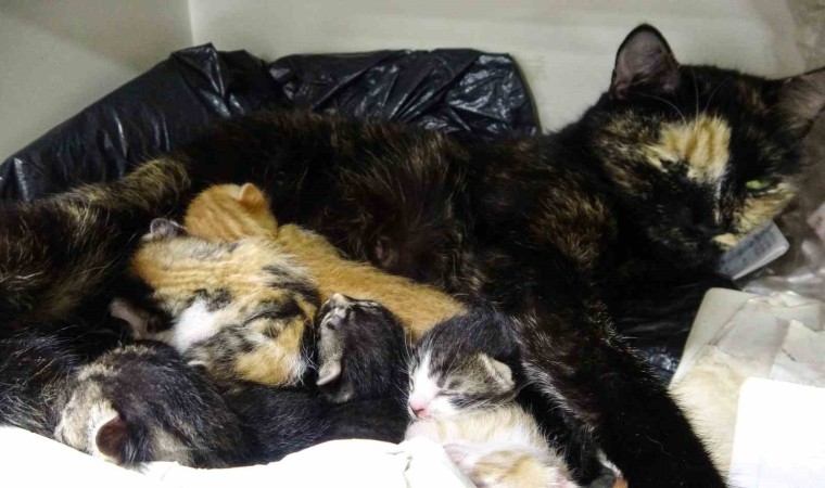 Esnaf İnan, iş yerinde serbestçe gezen iki kedinin yanı sıra sürekli pasajda dolaşan calico cinsi kediye de kucak açtı. Kedinin iş yerinde yavruladığını fark eden İnan, hem kediye hem de 6 yavrusuna sıcak bir yuva sağlayarak, beslemeye başladı.