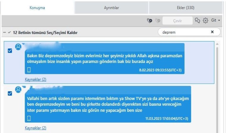 Operasyonla ilgili yürütülen çalışmalar çerçevesinde şebekenin, yurt dışına çıkmak isteyen depremzedeleri ve Erasmus öğrencilerini de dolandırdıkları tespit edildi. Ortaya çıkan yazışmalarda, dolandırıldıklarını anlayan depremzedelerin "Bakın Biz depremzedeyiz bizim evlerimiz her şeyimiz yıkıldı Allah aşkına paramızdan olmayalım bize insanlık yapın paramızı gönderin bak biz burada açız" diyerek dolandırıcılardan paralarını geri istemeleri dikkat çekti.
