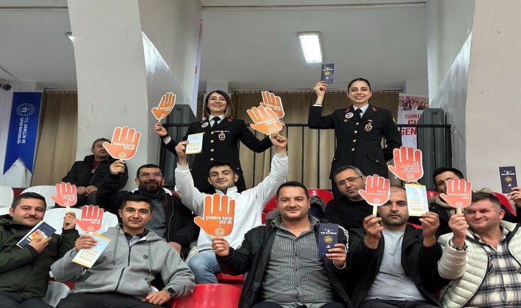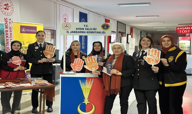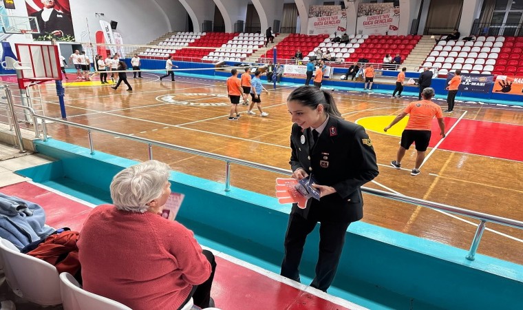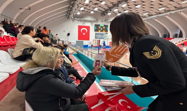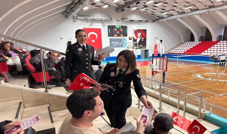 Aydın’da Jandarma ekipleri voleybol maçında stant açarak kadına şiddetle mücadele konusunda bilgilendirmede bulundu.