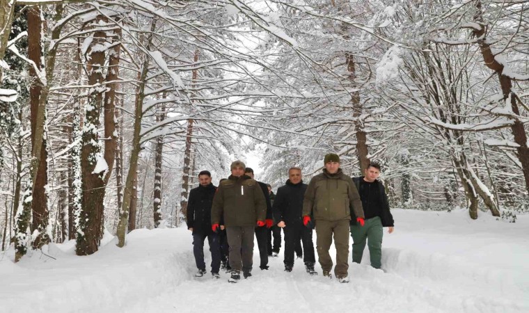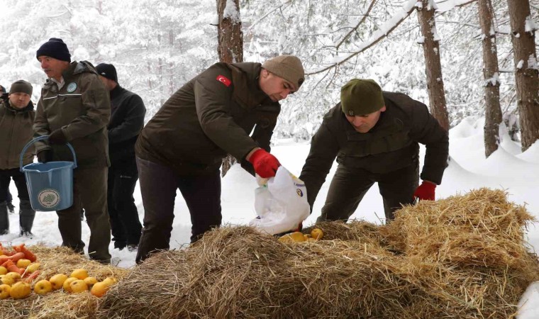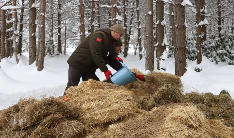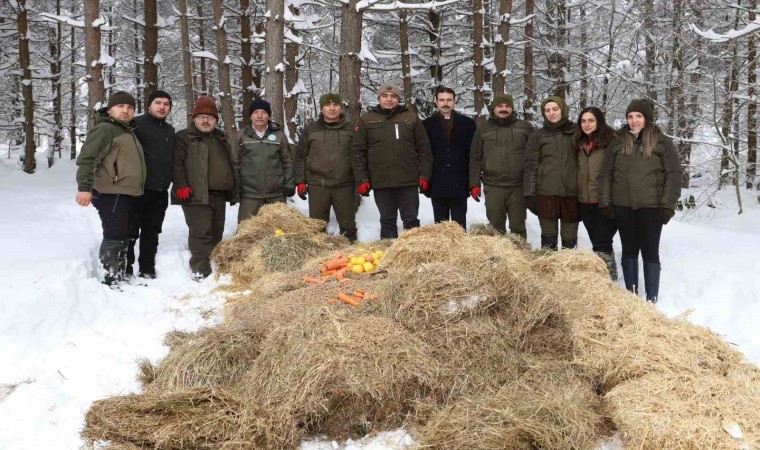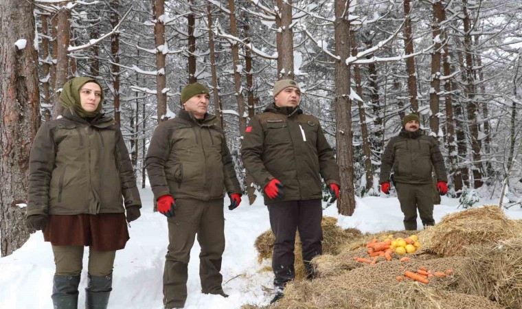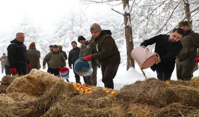 DÜZCE(İHA) – Düzce’de özellikle yüksek kesimlerde etkili olan kar yağışı nedeniyle yiyecek bulmakta sıkıntı yaşayan yaban hayvanları için, Vali Selçuk Aslan Doğa Koruma ve Milli Parklar Müdürlüğüne bağlı ekiplerle birlikte yemleme yaptı.