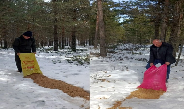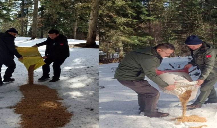 Karabük’ün yüksek kesinlerinde olumsuz hava şartları nedeniyle beslenmekte zorluk çeken yaban hayvanları için yemleme çalışması yapıldı.