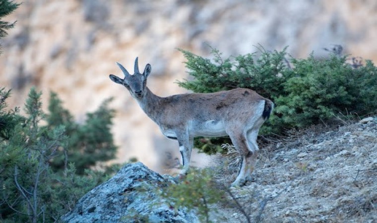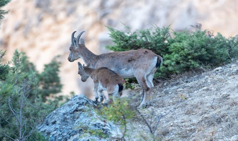 Erzincan’da avlanması yasak ve koruma altında olan yaban keçileri, Munzur Dağları eteklerinde görüntülendi.
