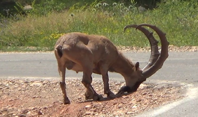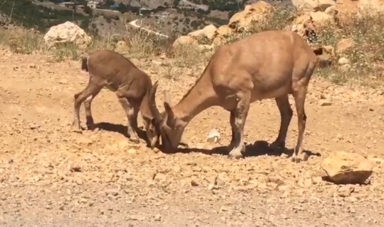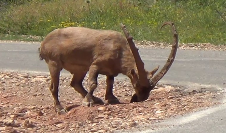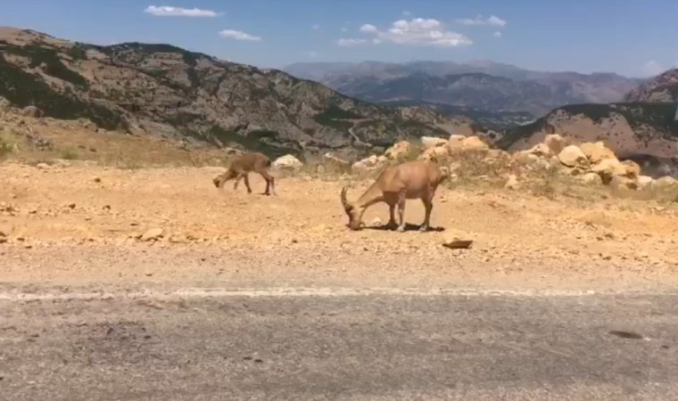 Tunceli’de koruma altındaki yaban keçileri, karayoluna inerek tuz ihtiyacını gideriyor. Yolu kullanan vatandaşlar, yaban hayvanlarının zarar görmemesi için karayolunun her iki yönüne uyarıcı tabelalar konulması gerektiğini belirtti.