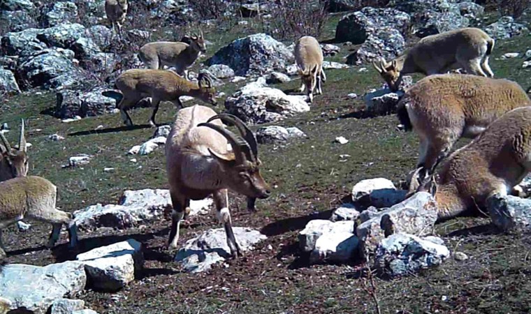 Erzincan’da sürü halinde yaban keçileri, fotokapanla görüntülendi.