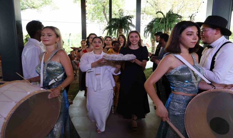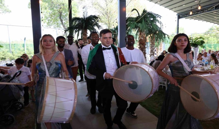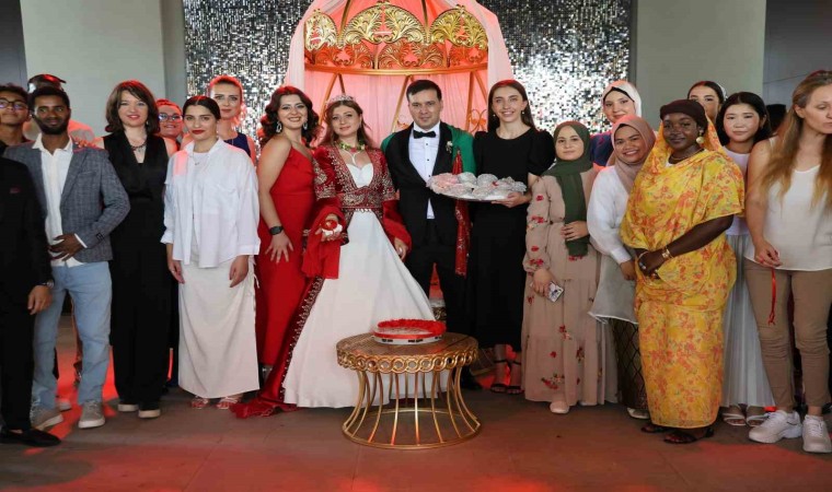 Damat Çağatay Pamuk ise düğünlerinde farklı bir anının oluşmasıyla mutluluk yaşadığını belirterek, “Çok mutluyuz, çok heyecanlıyız. Bugünlerde mutlu olduk. Yabancı öğrenciler de bizim kültürümüzü öğreniyor, görüyor ve mutlu oluyoruz” ifadelerini kullandı.