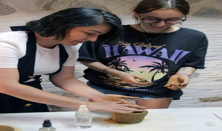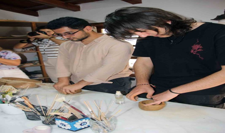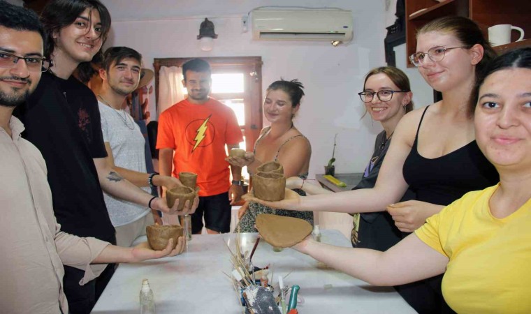 Türkiye Ulusal Ajansı’nın destekleri ile Avrupa Birliği ve diğer ülkelerden Muğla’ya gelen yabancı öğrenciler, usta öğreticilerden toprak seramik eserler yapmayı öğreniyor.