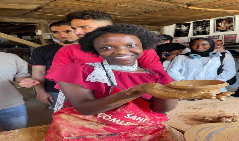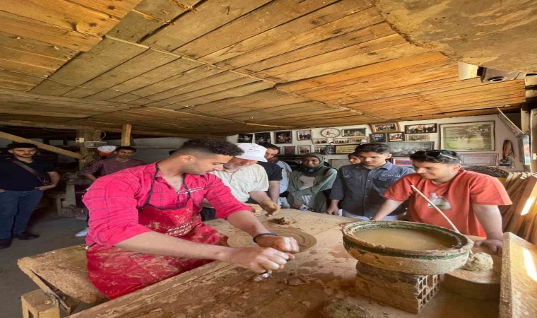 Bilecik Şeyh Edebali Üniversitesinde okuyan yabancı uyruklu öğrenciler Kınık Köyü gezinden çömlek yaptılar.