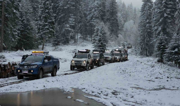 Karabük’te hafta sonu yağan kar yağışı yüksek kesimleri beyaza büründürdü. Karabük Safranbolu Otomobil ve Doğa Sporları Arama Kurtarma Kulübü Derneği (KARDOFF) üyeleri de karın tadını çıkarmak için yaylalara akın etti. 20 araç ile çıkılan konvoyda 4x4 arazi araçları ile beyaz örtüyle kaplı ormanda ilerleyen bazı araçlar ise saplandıkları çamurdan yine ekip üyeleri tarafından çeki vinçleri yardımı ile çıkartıldı. Gezen yaylası, Ömür Ahmet, Jandarma mezarlığı ve son olarak Sarı çiçek yaylasında son bulan off-road tutkunları kar safarisi yaparak, adrenalin dolu dakikalar yaşadı.