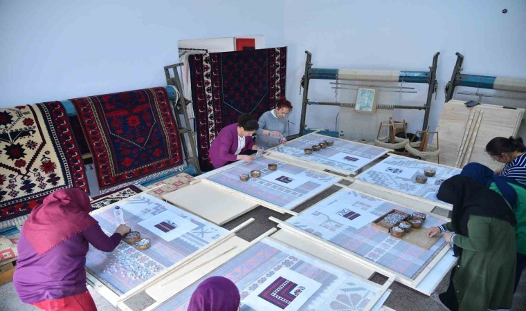 Balıkesir’in Sındırgı ilçesinde dünyaca ünlü ve coğrafi işareti Sındırgı Belediyesine ait olan 3 bin yıllık kültür Yağcıbedir halıları caddeye döşeniyor.