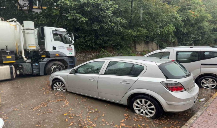 Zonguldak’ta sağanak yağış nedeniyle Kadırga Caddesi’ndeki yol bir süreliğine kapandı.