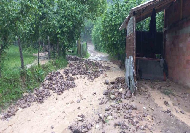 Yağış sonrası mahalle yolu ulaşıma kapandı
