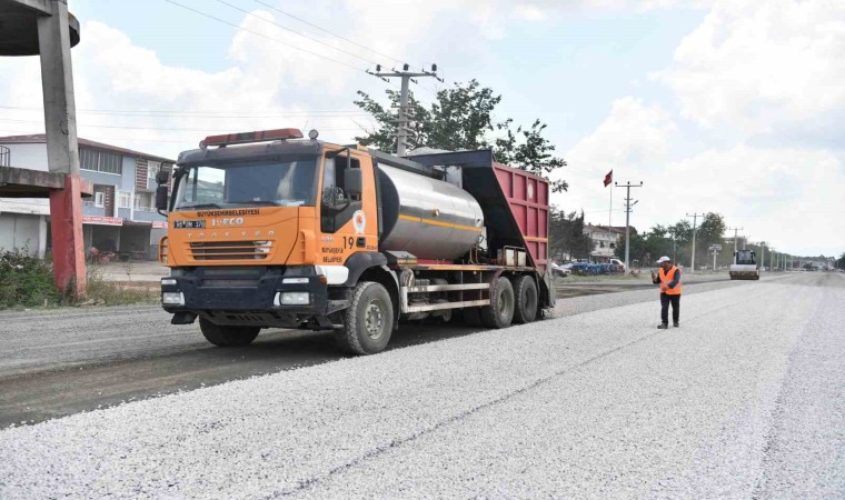 Samsun Büyükşehir Belediyesi, aşırı yağış sonrası zarar gören ve bozulan yollardaki yenileme çalışmalarını sürdürüyor.