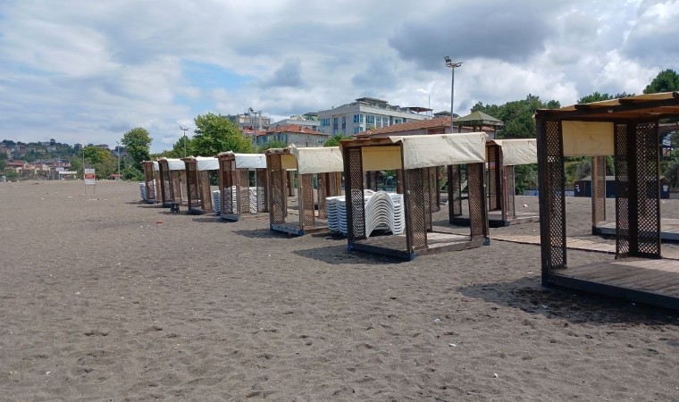 DÜZCE(İHA) – Düzce’nin Akçakoca ilçesinde yağışla birlikte denizinde dalgalı olması neticesinde sahiller boş kaldı.