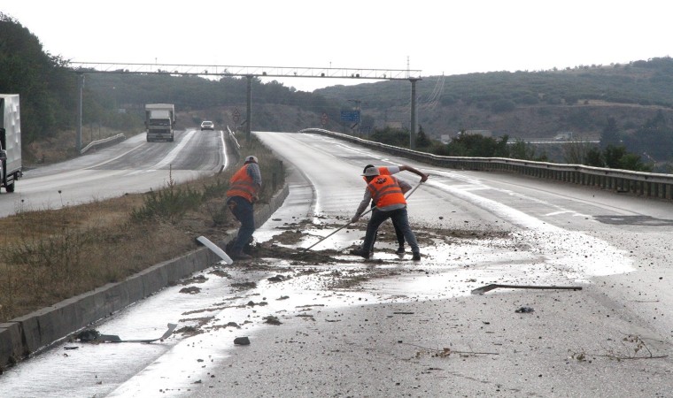 Manisa’nın Kula ilçesinde yağışlı havanın da etkisiyle kayganlaşan yolda kontrolden çıkan tır, karşı şeride geçerek yolu kapattı. Trafik akışının bir süre kapalı kaldığı kazada şans eseri yaralanan olmadı.