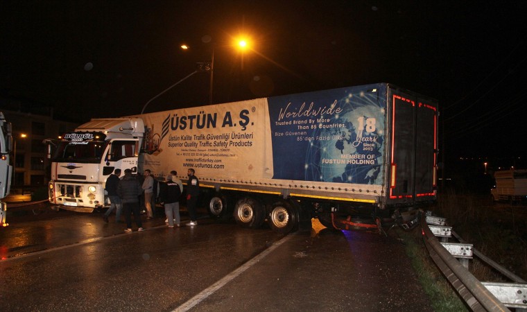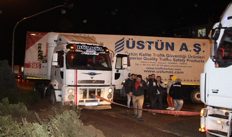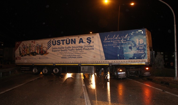 Manisa’nın Kula ilçesinde yağışlı havanın da etkisiyle kayganlaşan yolda kontrolden çıkan tır, İzmir-Ankara D300 karayolunu trafiğe kapattı. Başka bir tır yardımıyla kısa bir sürede karayolundan kaldırılan tırın ardından trafik akışı normal seyrine döndü.