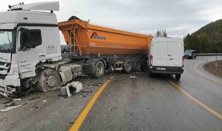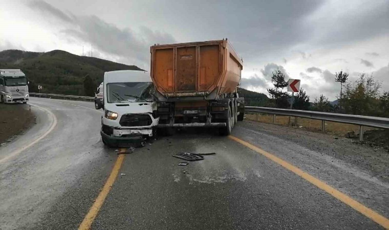 Kastamonu’da sağanak yağış sebebiyle kayganlaşan yolda panelvan araç ile hafriyat kamyonunun çarpışması neticesinde 1 kişi yaralandı.