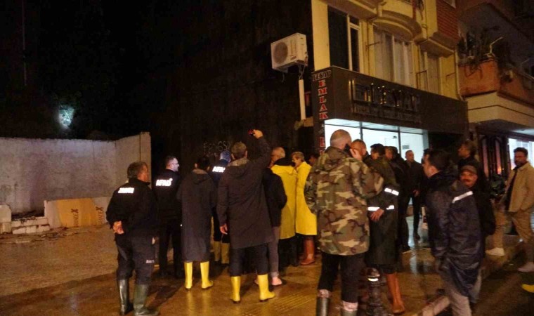 Antalya’nın Manavgat ilçesinde şiddetli yağmur nedeniyle kayan toprak kütlesi, bir binanın duvarına zarar verdi. Binaya yağmur suları girdi.