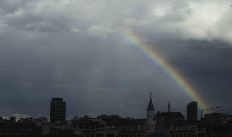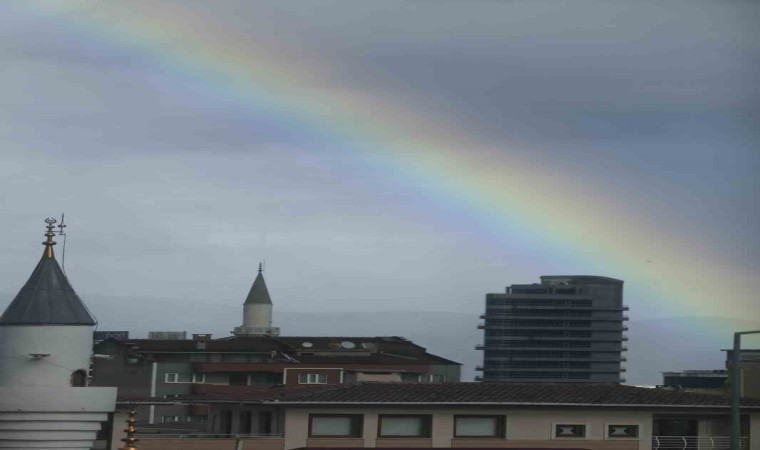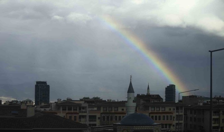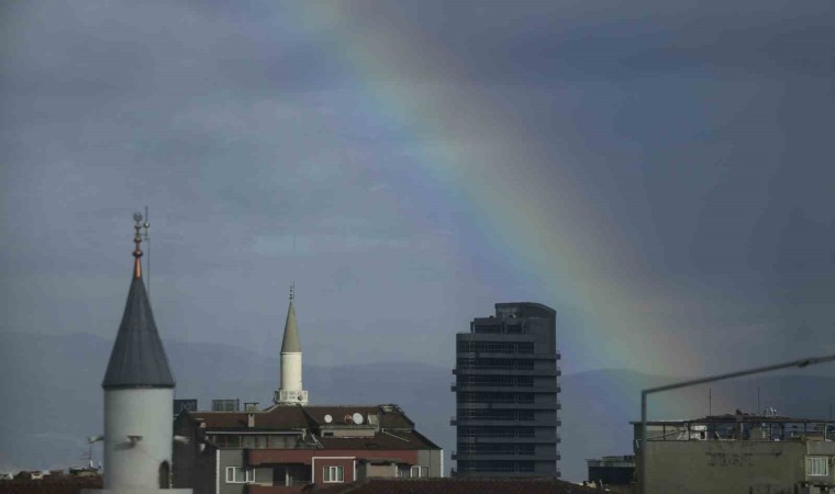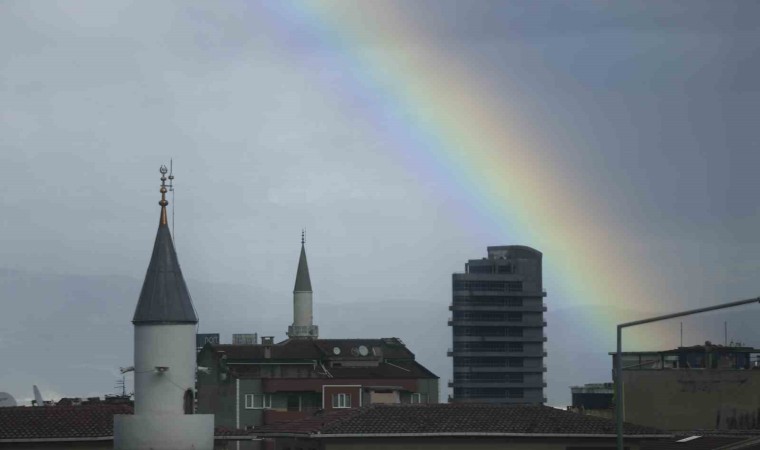 Bursa’da etkili olan yağmurun ardından gökyüzünde oluşan gökkuşağı görenleri mest etti.