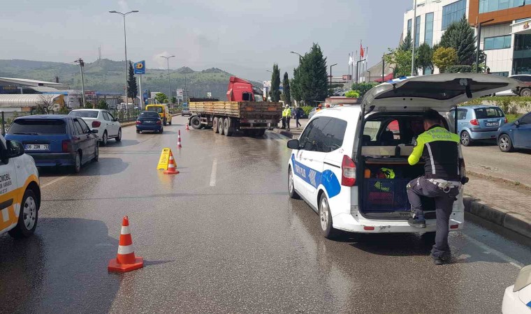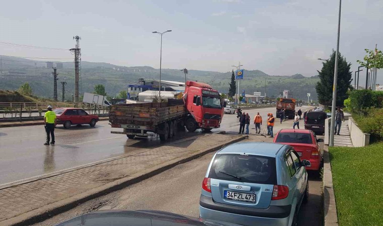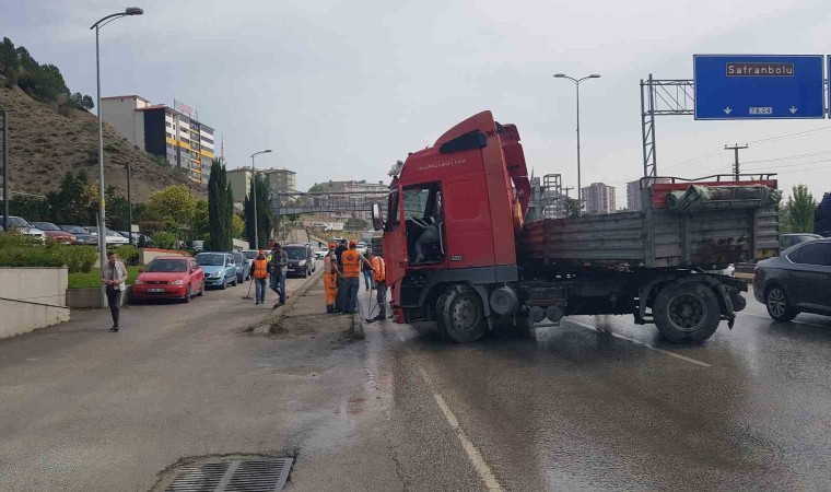 Karabük’te yağmur yağışından dolayı sürücüsünün kontrolünden çıkan tırın otomobile çarpması sonucu meydana gelen kazada 1 kişi yaralandı.