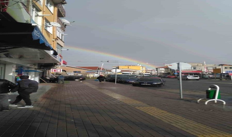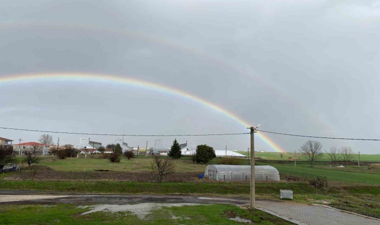 Tekirdağ’ın Muratlı ilçesinde yağmurun ardından oluşan gökkuşağı görenleri hayran bıraktı.