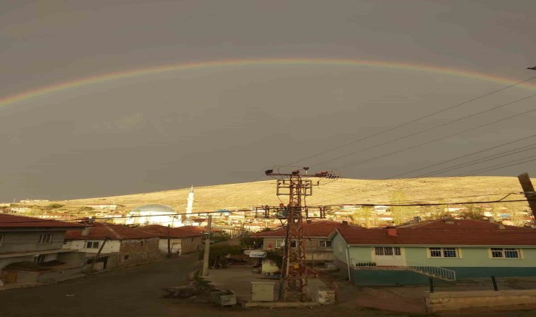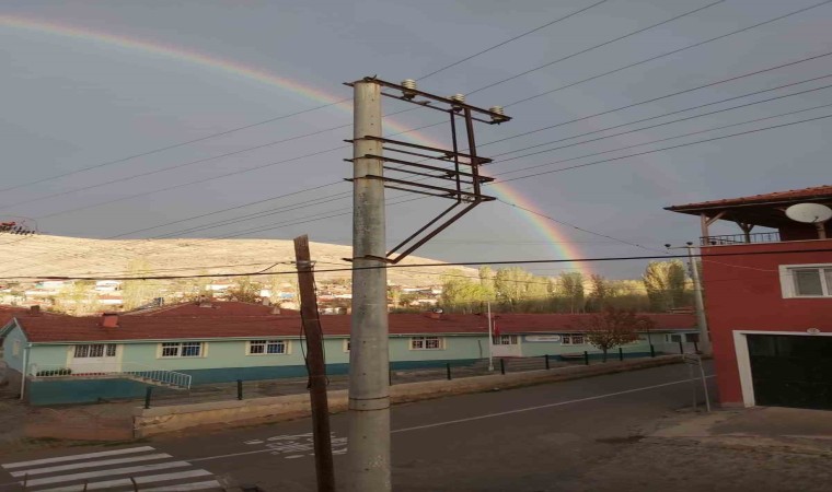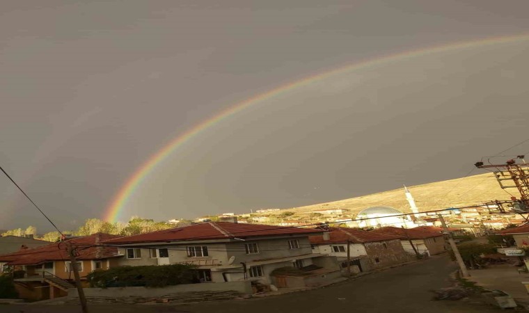 Afyonkarahisar’ın Şuhut ilçesinde yağmur sonrasında ortaya çıkan gökkuşağı adeta görsel şölen oluşturdu.