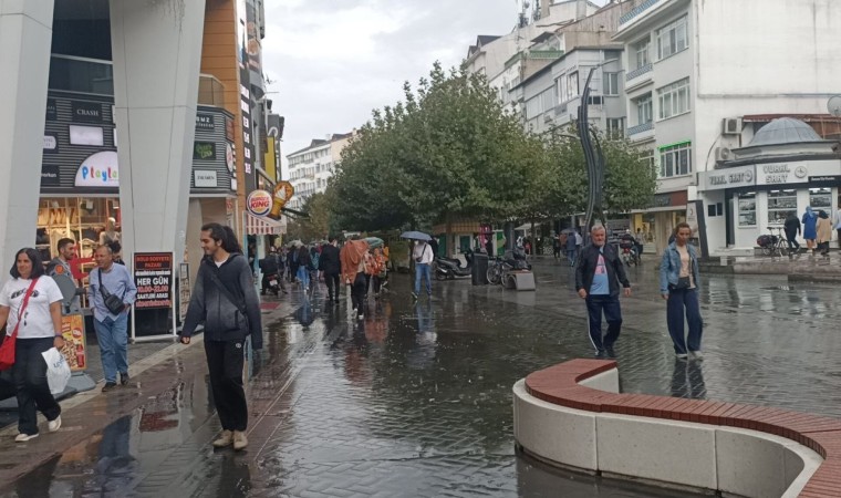 Bolu’da etkili olan sağanak yağış hayatı olumsuz etkiledi. Yağmura hazırlıksız yakalanan vatandaşlar saçak altlarına sığınarak, soluğu şemsiye satan esnaflarda aldı.