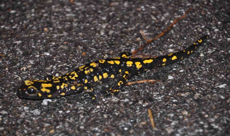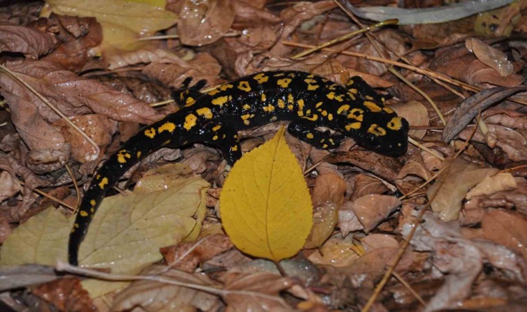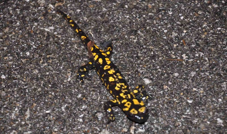 Tunceli’de yağmurlardan sonra ortaya çıkan ve nesli tükenmekte olduğu için koruma altında bulunan sarı benekli semender görüntülendi.