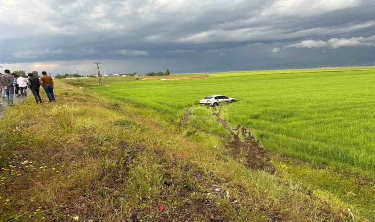 Ağrı’da yağmurlu havada kontrolden çıkan aracın araziye girdiği kazada sürücü yaralandı.