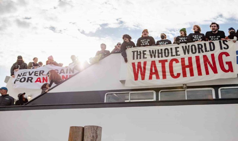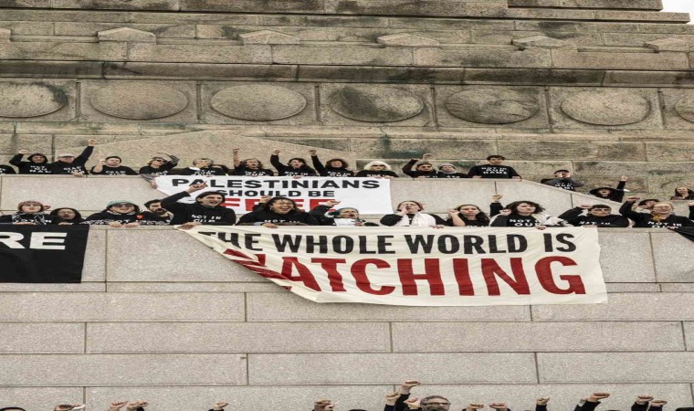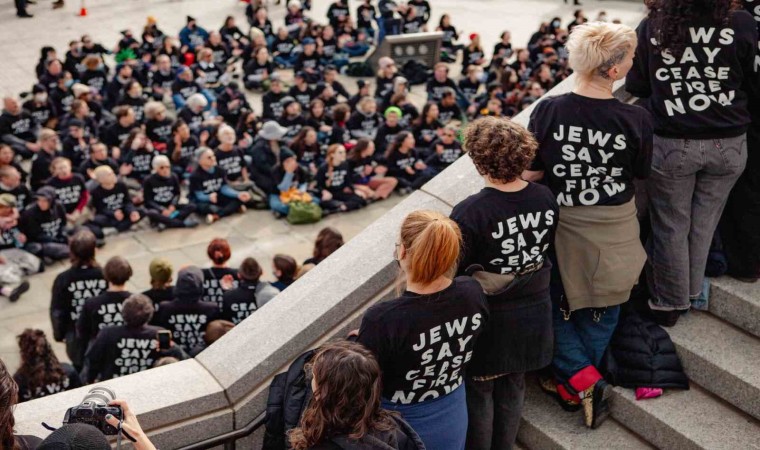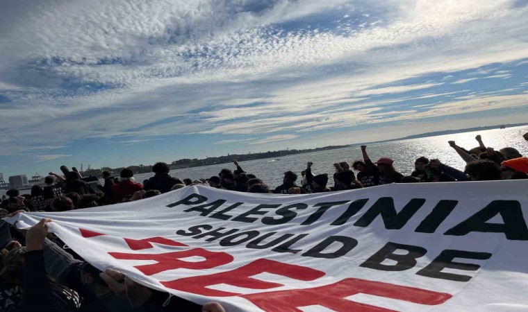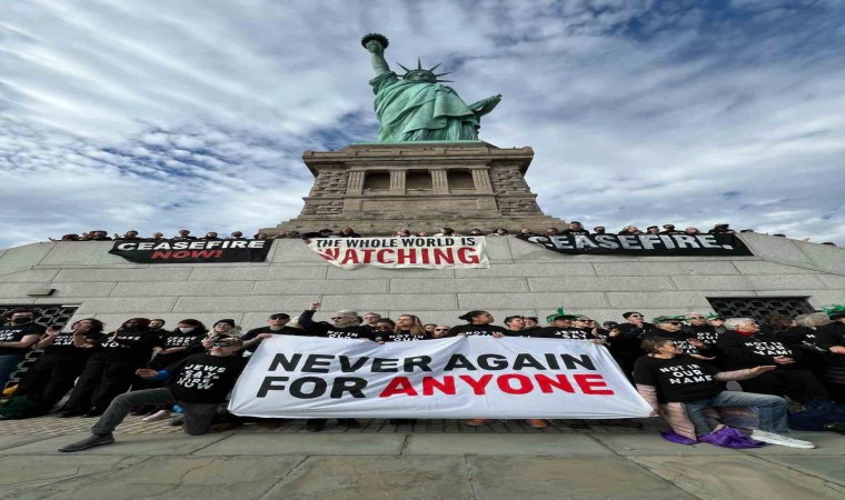 İsrail’in Filistin’e yönelik saldırılarında can kaybı 10 bini aşarken, dünya genelindeki birçok Yahudi grup ateşkes çağrısı yapmaya devam ediyor. ABD’nin New York kentindeki Liberty Adası’nda yer alan ülkenin simgelerinden Özgürlük Heykeli önünde Filistin’e destek gösterisi gerçekleştirildi. Barış için Yahudilerin Sesi (JVP) adlı grubun çağrısıyla toplanan yaklaşık 500 kişi, Özgürlük Heykeli önünde pankart açıp oturma eylemi yaptı. Gazze’de ateşkes yapılmasını isteyen eylemciler, “Bütün dünya izliyor”, “Filistinliler Özgür Olmalı” ve “Bir Daha Hiç Kimse İçin Asla” yazılı pankartlar açtı.