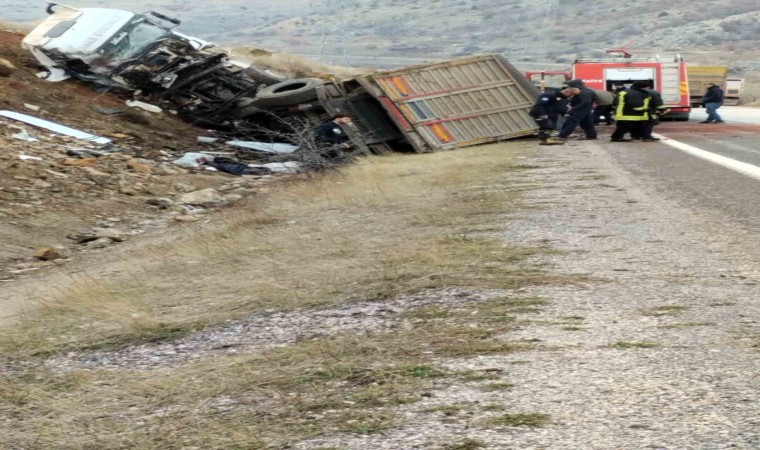 Kayseri’nin Yahyalı ilçesinde kamyonun şarampole devrilmesi sonucu şoförü yaralandı.