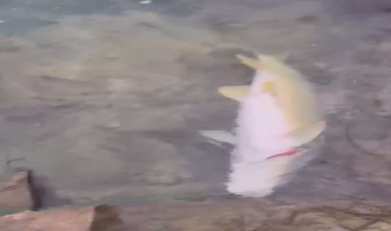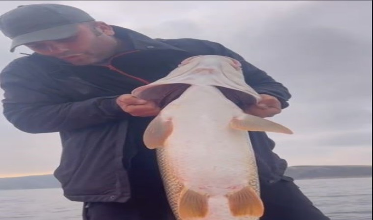 Keban Baraj Gölünde olta balıkçılarından Murat Şimşek, yaklaşık 30 kilo ve 1 buçuk metre uzunluğunda olan Fırat turnası yakaladı. Yakaladığı dev Fırat turnasını ip yardımıyla karaya çeken Şimşek, balığın büyüklüğünü görünce verdiği tepki ise gündem oldu. Şimşek, dev Fırat turnasını görünce, ’’Ejderha, bu adam yer, gel buraya’’ ifadelerini kullandı.