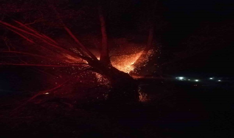Yangının söndürülmesinin ardından ekipler bölgede soğutma çalışması yaptı.