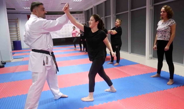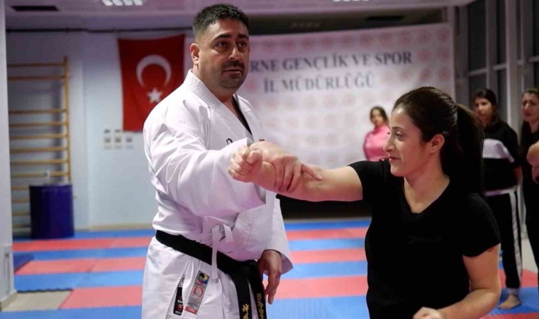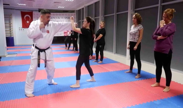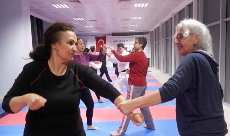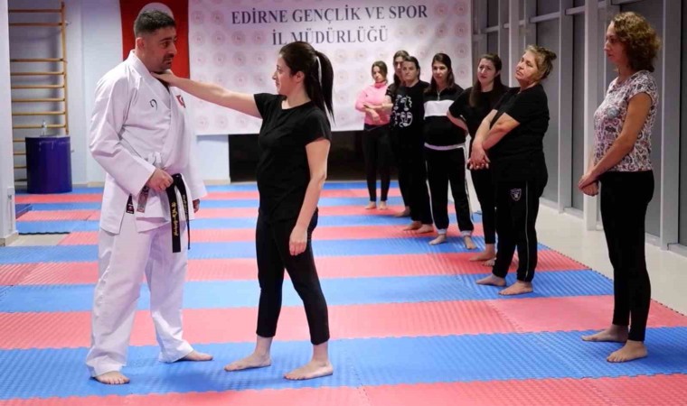 Edirne’de Gençlik ve Spor İl Müdürlüğü tarafından başlatılan yakın savunma kursuna kadınlar yoğun ilgi gösteriyor.