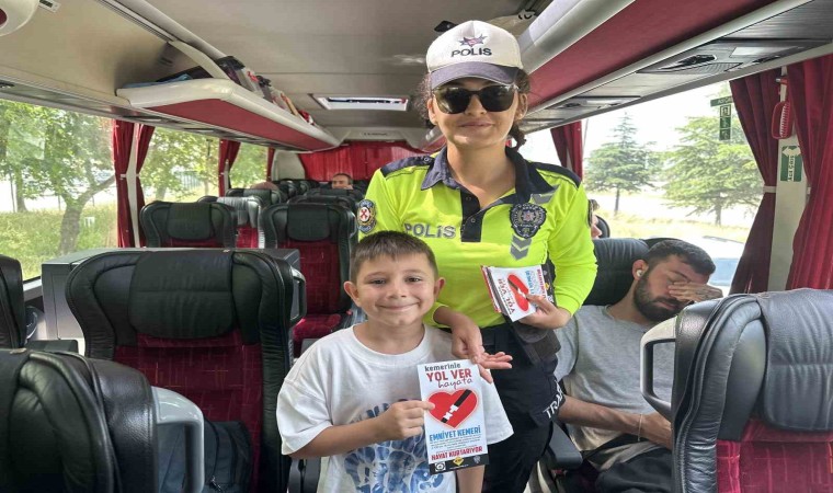 Bursa İl Emniyet Müdürlüğü’ne bağlı Trafik Denetleme Şube Müdürlüğü ekipleri 9 günlük bayram tatili öncesi olası kazaların önüne geçmek amacıyla Bursa Şehirlerarası Terminali çıkışında yola çıkacak tüm otobüsleri durdurarak bilgilendirme ve kontrol faaliyeti gerçekleştirdi. Otobüslerde bulunan yolculara; ’Emniyet kemeri takmak alışkanlık olsun, üzüntüler son bulsun’ uyarısı yapılarak emniyet kemerinin önemine dikkat çekildi. Daha sonra trafik polisleri yolculara bilgilendirici broşür dağıttı. Şoförlerin ise ehliyet bilgileri, takograf ve benzeri unsurları kontrol edildi. Çift şoför kontrolü de yapan polisler, sürücülere yolculuk esnasında uyulması gereken kuralları anlatarak hız limitlerine uyulması zorunluluğuna dikkat çekti.