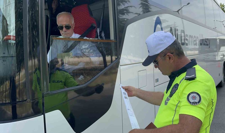 Bursa’da 9 günlük Kurban Bayramı tatili öncesi trafikte huzur ve güvenliğin sağlanması amacıyla Bursa Şehirlerarası Otobüs Terminali’nde otobüsler teker teker durduruldu. Yolcular bilinçlendirildi ve emniyet kemerinin önemine dikkat çekildi.