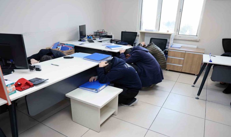 Belediye hizmet binasındaki çalışanlara yönelik gerçekleştirilen tatbikatta ilk olarak alarm verildi. Çalınan sirenlerin ardından personel, çök kapan tutunu uyguladı. Deprem alarmı verilmesiyle bulundukları alanda kendilerini emniyete alan çalışanlar, sirenlerin susmasıyla birlikte kafalarını ellerinin arasına alarak binadan tahliye edildi. Belediye meydanındaki toplanma alanına ulaşan personel tatbikatı başarıyla tamamladı.