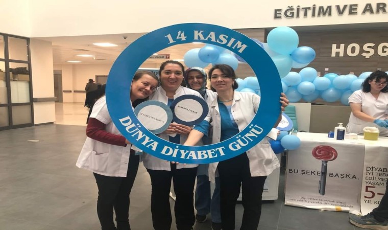Kurulan stantta dağıtılan broşürlerle vatandaşlar bilgilendirildi. Ayrıca yapılan kan şeker ölçüm sonuçlarına göre vatandaşlar bilgilendirilerek ilgili alanlara yönlendirildi. Başhekim Doç. Dr. Hasan Ergenç de Dünya Diyabet Günü standını ziyaret etti. Ergenç, burada yaptığı konuşmada, “Ülkemizde ve dünyada diyabet sıklığı giderek artmaktadır. Diyabet kronik bir hastalıktır. Pankreastaki beta hücrelerinin insülin salgısının üretimin azalmasıyla ya da üretimin yeterli düzeyde olmasına rağmen organlarda yeterince fonksiyon görememesine bağlı olarak kan şekeri yüksekliğiyle seyreden kronik bir hastalıktır. Kronik hastalık olduğu için ömür boyu devam eden bir hastalıktır. Bütün sistemleri etkilemektedir. Bütün organları etkilemektedir. Ciddi organ kayıpları mesela en fazla gözdeki görme kaybına, ayakların kesilmesine kadar neden olmaktadır. Hatta ölümcül komplikasyonlara da neden olmaktadır. Normalde bu hastalığın sıklığının artması obezitenin artması, obezite de teknolojinin hayatımıza girmesi, hayatımıza yer alması, katkı maddeleri, işlenmiş gıdaların olmasından dolayı obezite sıklığının artmasına bağlı olarak diyabet sıklığı artmıştır. Normalde diyabet kronik bir hastalık olduğu için erken teşhis ve takiplerle önlenebilen bir hastalıktır. Yani diyabetten korkmayalım, erken tanı takip bizim için önemli olduğu için yaşam kalitemizin düzetmek açısından takip ve kontrollerimizi düzenli yapalım. Hekimler, diyetisyenler ve de diyabet hemşireleri ile beraber vatandaşlarımıza sağlık hizmeti sunulmaktadır" dedi.