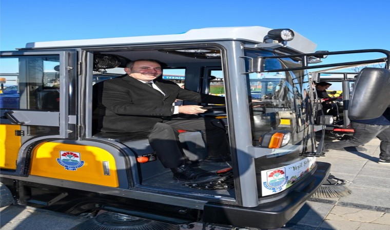 Yeni araçları inceleyen ve hakkında bilgiler alan Başkan Tutuk, zemin süpürge makinesinin direksiyonuna geçerek araçları test etti. Başkan Tutuk’a, Yalova Belediye Başkan Yardımcıları Fatih Şahin, Ahmet Sarıduman, Volkan Dadaloğlu ile birlikte birim müdürleri de eşik etti.