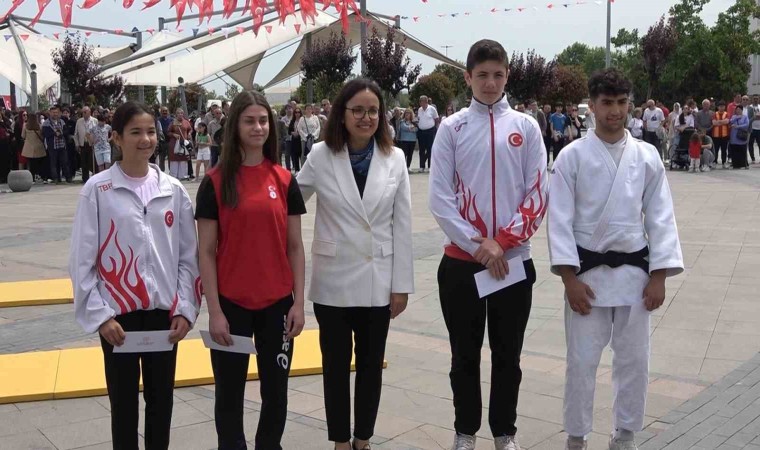 Programda Vali Hülya Kaya ve protokol üyeleri ulusal ve uluslararası yarışmalarda derece elde eden gençlere hediyelerini takdim etti.
