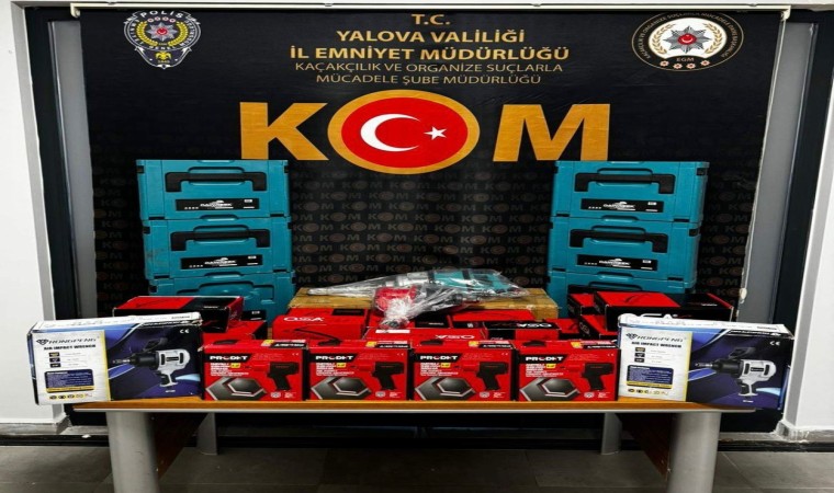 Alınan bilgiye göre, Yalova Emniyeti Kaçakçılık ve Organize Suçlarla Şube Müdürlüğü tarafından M.Y.’nin kargo aracılığıyla kaçak tütün getirileceği bilgisine ulaşıldı. Kargodan gelen koliler ve şüpheliye ait araçlarda yapılan aramada, tepsi içerisinde 4 bin 200 adet dolu makaron, 50 kutu içerisinde toplam 10 bin adet sahte bandrollü boş makaron, 6 koli içinde 76 bin adet dolu makaron, 50 paket gümrük kaçağı sigara, 7 adet zımpara makinesi, 14 adet havalı somun sıkma ve sökme tabancası, 2 adet havalı bijon tabancası, 6 adet somon sökme makinası ve aparatları ve 2 adet somon sökme makinası ele geçirilmiştir.