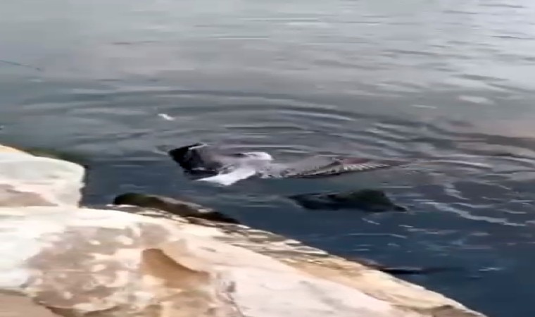 Yalova Şiir Yolu üzerinde balık tutan bir vatandaş oltasını Marmara Denizi’ne doğru attı. Oltasına balık beklerken martı takılan amatör balıkçı, arkadaşlarının alay konusu oldu. Balıkçı oltaya takılan martıyı yavaş yavaş kıyıya çekti. Daha sonra ise martı oltadan kurtarılarak serbest bırakıldı.
