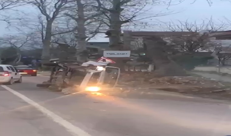 Yalova-Termal kara yolunda kontrolden çıkan hafif ticari araç yan devrildi. Kazada araçta bulunan 6 inşaat işçisi şans eseri yara almadan kurtuldu.