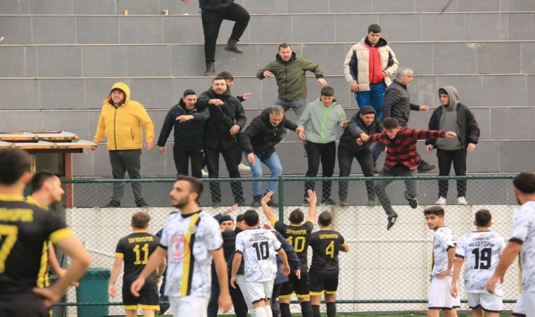 Esenköy sahasında Çınarcık Belediyespor ile Safranspor kozlarını paylaştı. Mücadelenin ilk yarısını konuk ekip 2-1 üstünlükte tamamladı. İkinci yarının başında ev sahibi, durumu 2-2 yaptı. Ancak Safranspor peş peşe goller bularak 4-2 öne geçerken, konuk ekibin gol sevinci sonrasında yeşil saha bir anda karıştı. Tribünden atlayan taraftarları jandarma ekipleri güçlükle önledi. Olaylar esnasında ev sahibi ekibin savunma oyuncusu Doğan Erbiçer, rakip oyunculara saldırması nedeniyle kırmızı kartla oyun dışına gönderildi. Mücadeleyi Safranspor 7-4 kazanırken, maçın hakemi Batuhan Kösem mücadelede 1 kırmızı, 9 da sarı kart gösterdi.