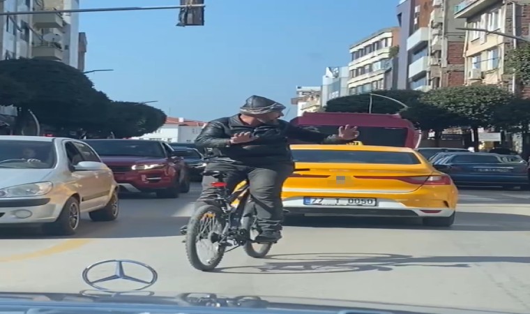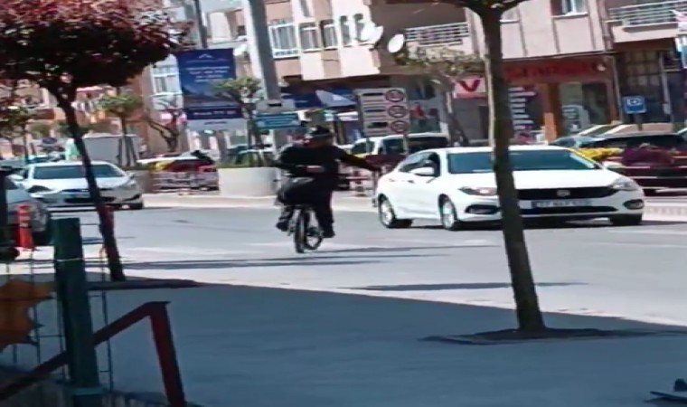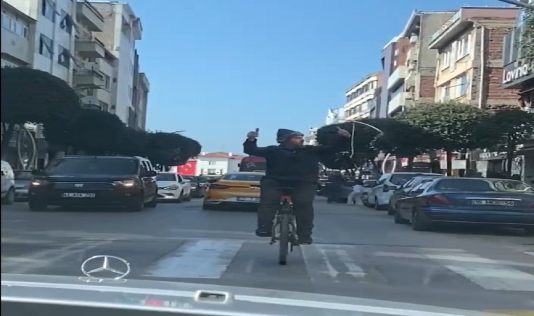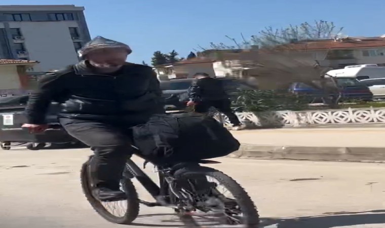 Yalova şehir merkezinde sokak ve caddelerde bisikletine ters binerek dolaşan vatandaşı görenler şaştı kaldı.