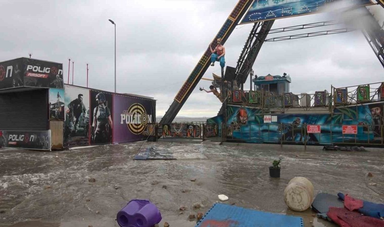 Yalova’da etkili olan fırtına nedeniyle kent merkezindeki lunapark dev dalgalar nedeniyle yaklaşık 10 milyon liralık hasar oluştu.