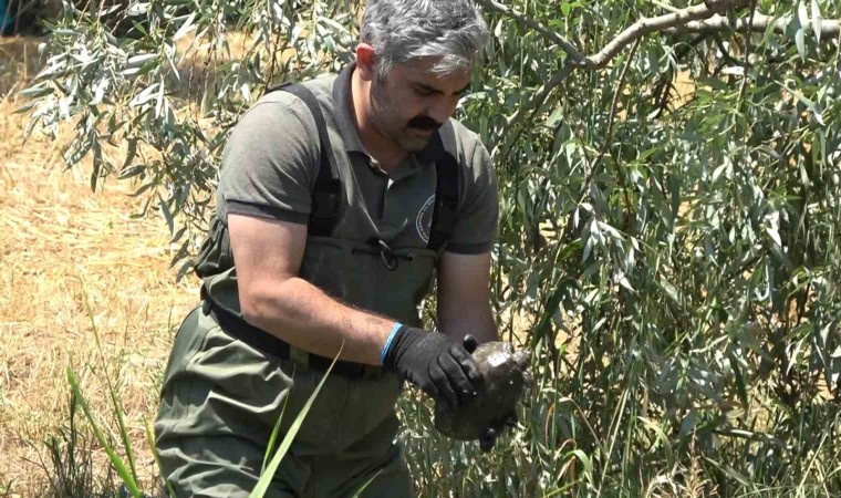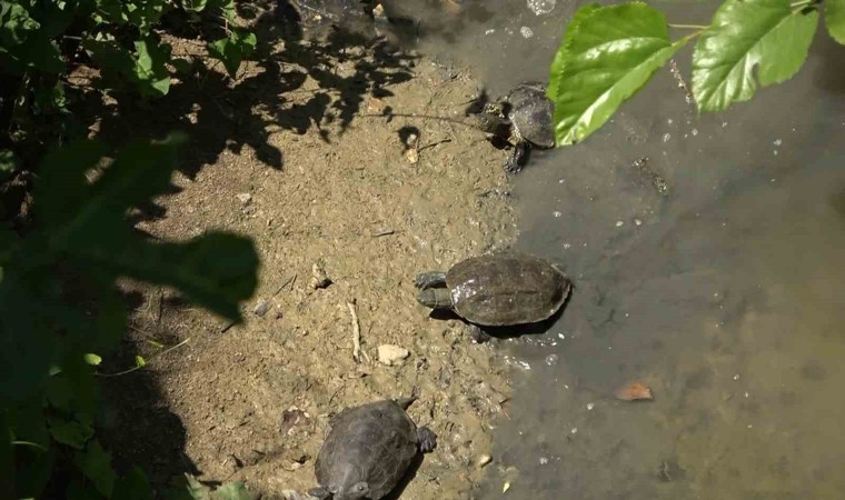 Yalova’nın Çiftlikköy ilçesinde bulunan Sultaniye Deresi’ndeki çizgili kaplumbağalar ıslah çalışmalarından etkilenmemeleri için Armutlu ilçesindeki Sarp Deresi’ne nakledildi.